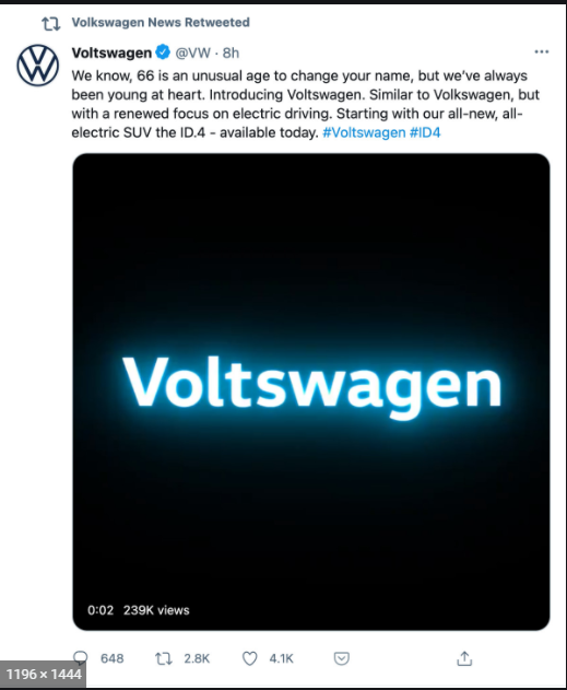 The American Twitter handle of the corporation changed its name to Voltswagen in the morning of March 30 that got the media outlets (and the online community) to scratch their heads, to decipher whether it is really happening.